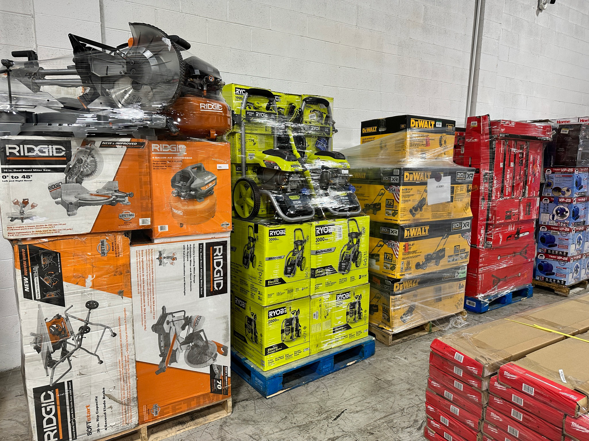 You can find Mixed tool sets, lawnmowers, generators, outdoor furniture, appliances, and more in over 300 pallets in stock! Buy LTL or buy by the pallet!