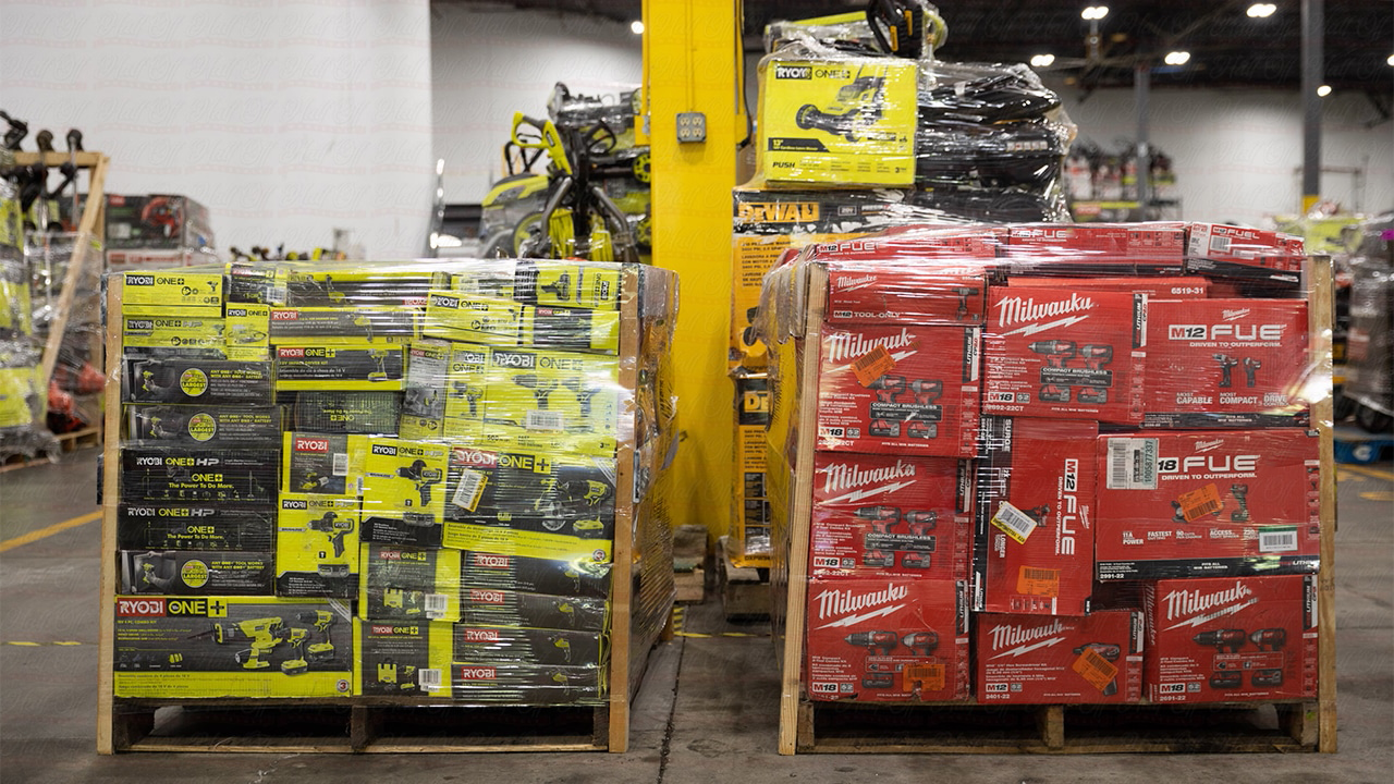 Tools & Equipment Clearance. Each Pallet is different. Each load contains an assortment of online and store returns /clearance items (large and small). You pay only a percentage of the original cost per item.