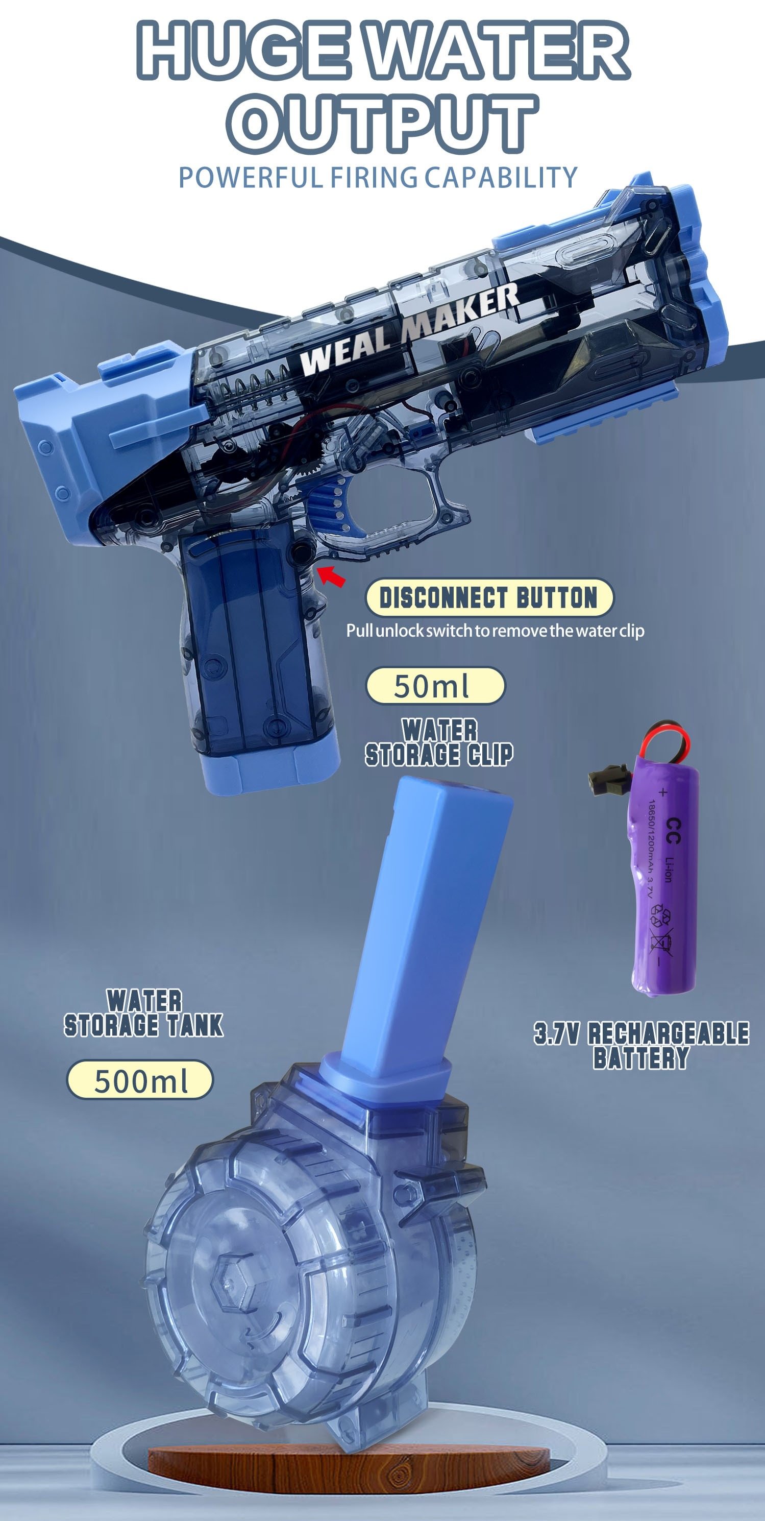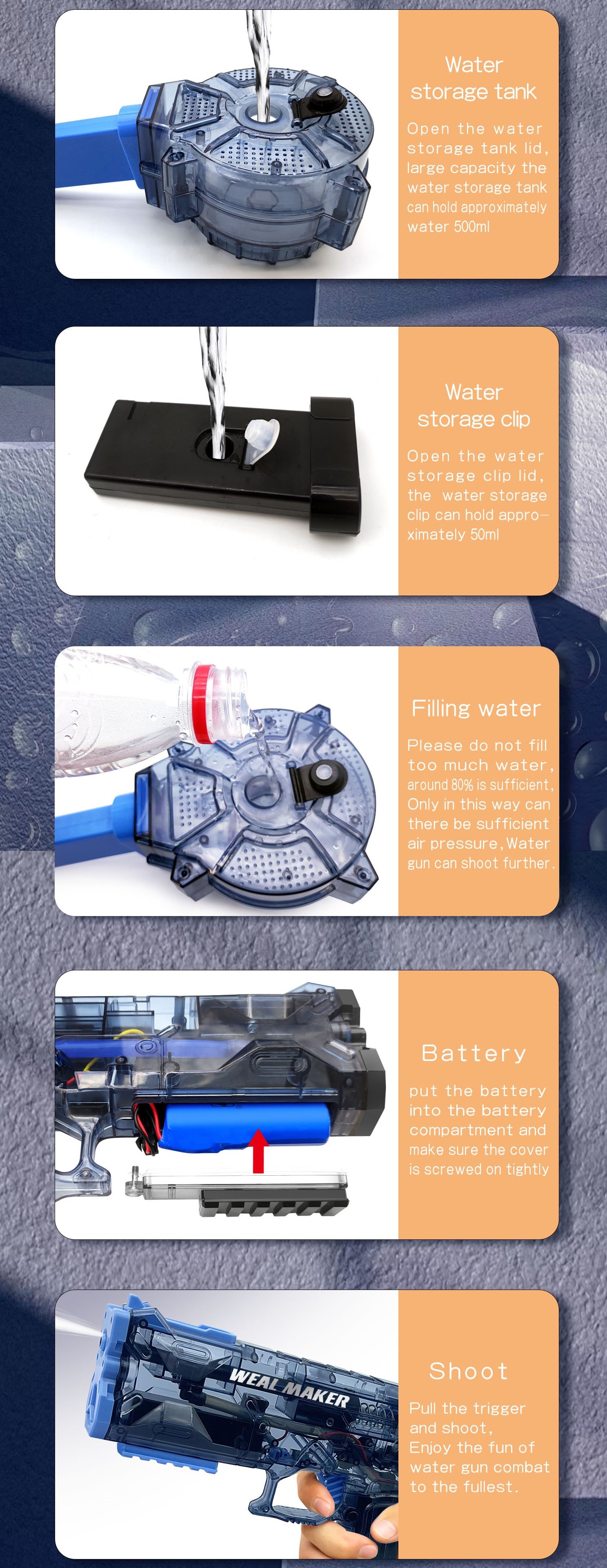 - Small body large capacity is the biggest feature of this water gun!